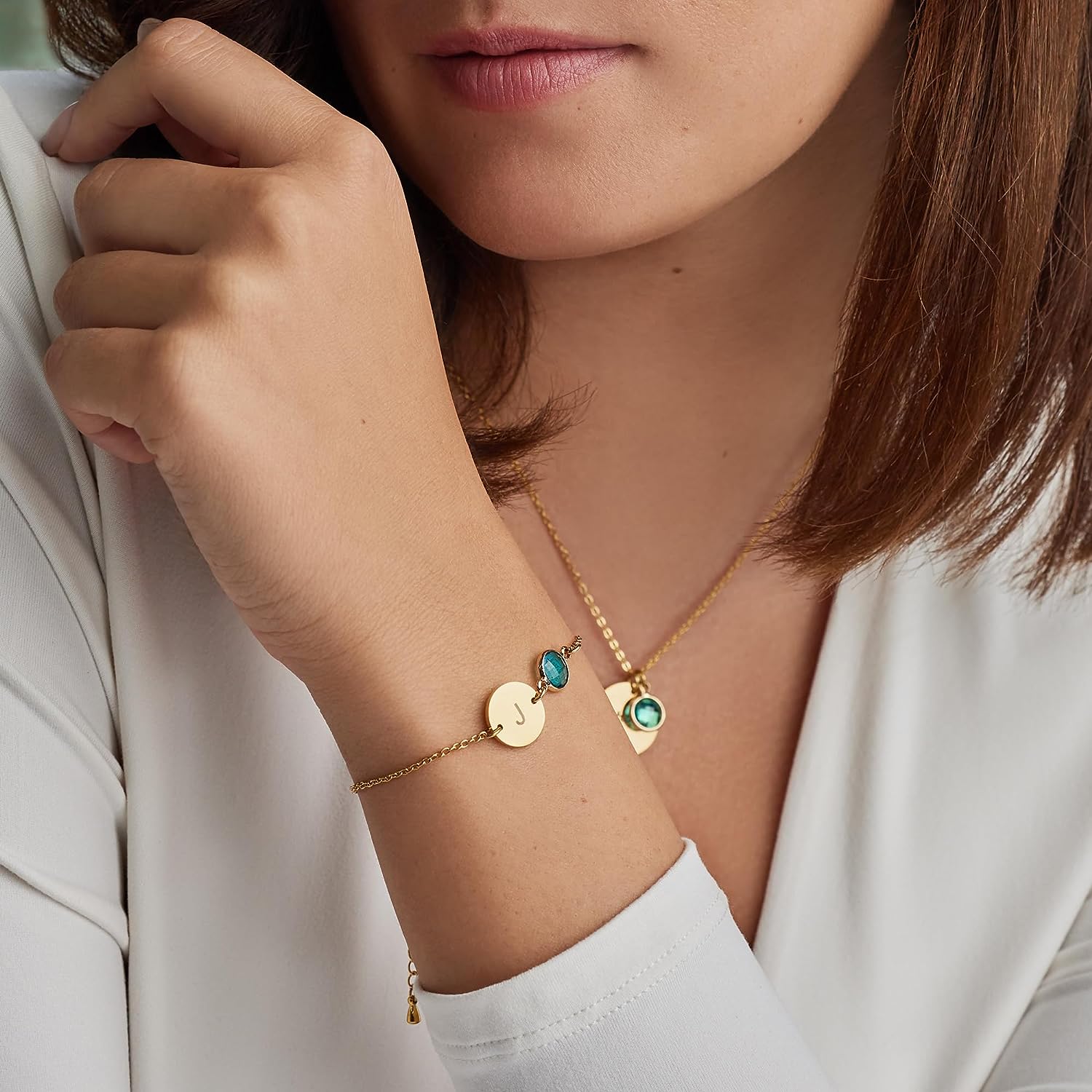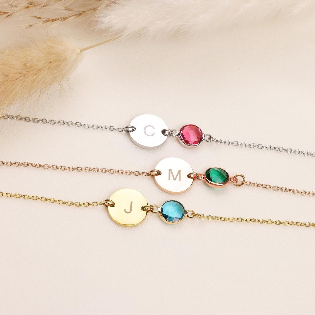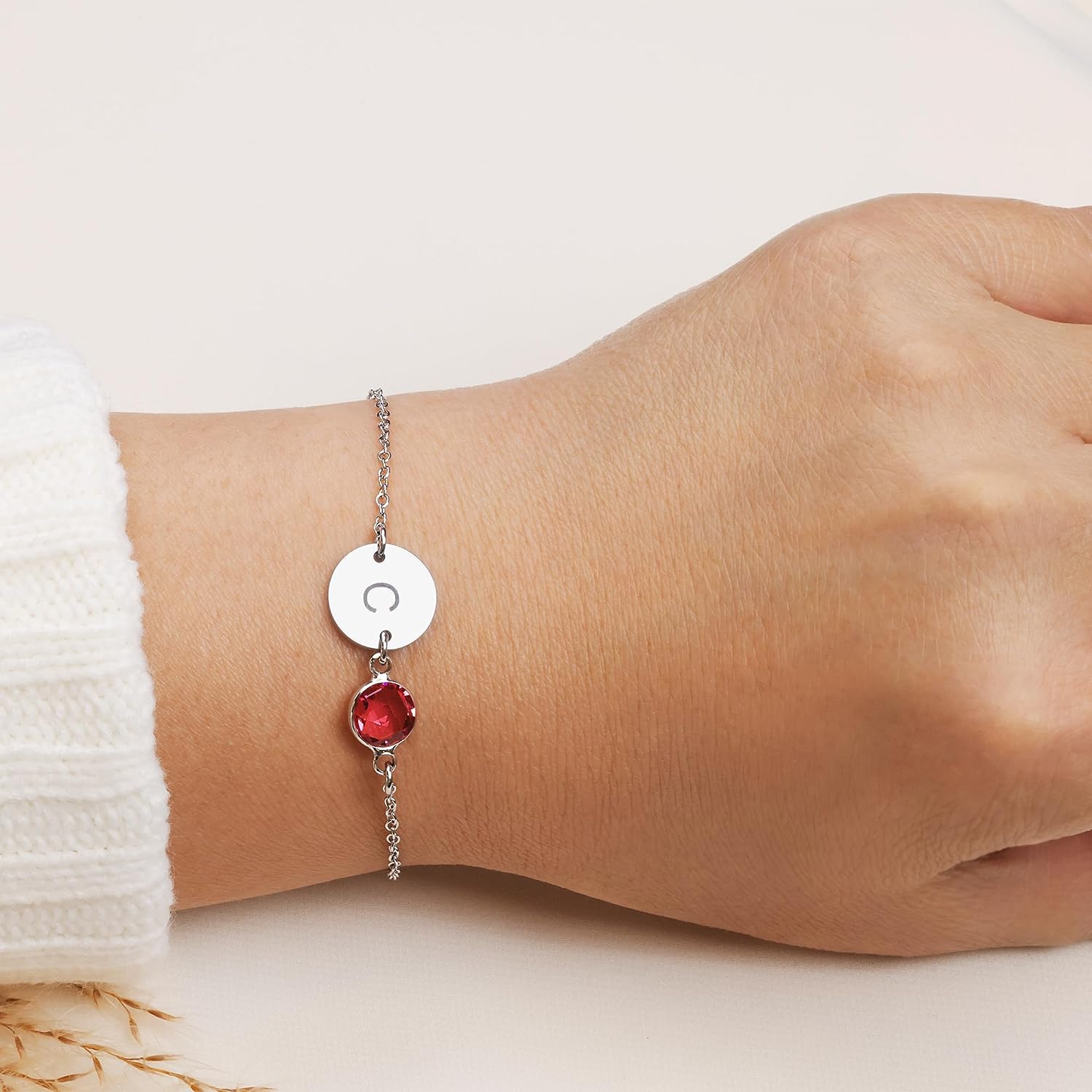 CHARMING, EYE-CATCHING DESIGN & GIFT-READY PACKAGING: Nothing matches the uniqueness & exclusivity of your custom birthstone initial charm bracelet. Your timeless elegant bracelet comes in a beautiful gift box, ready to be presented to her on any occasion. Watch her heart melt with joy and appreciation for such a thoughtful gift!
