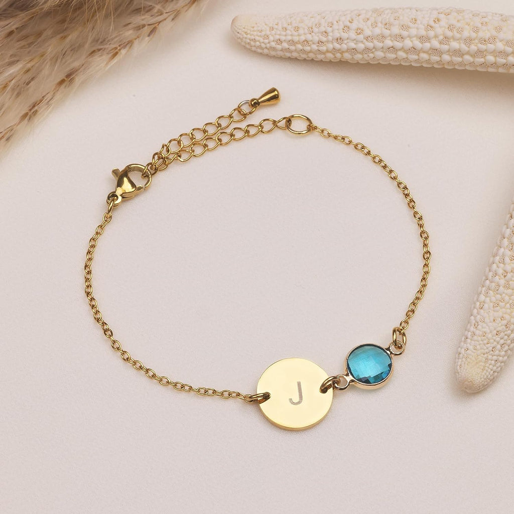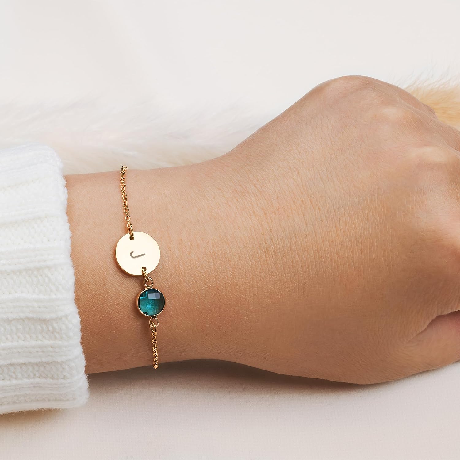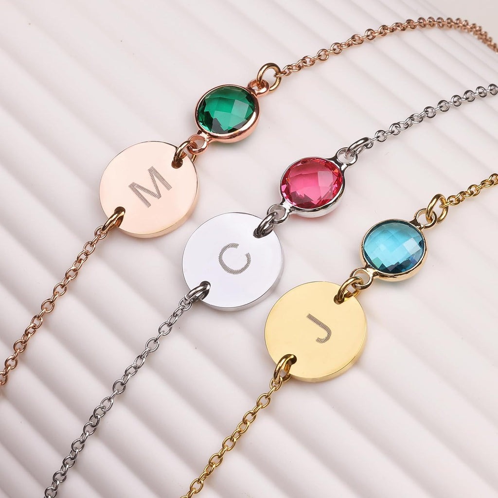Birthstone Initial Charm Bracelet for Women Girls Best Friend Daughter with Birthstone - CGB1000. Starts at
