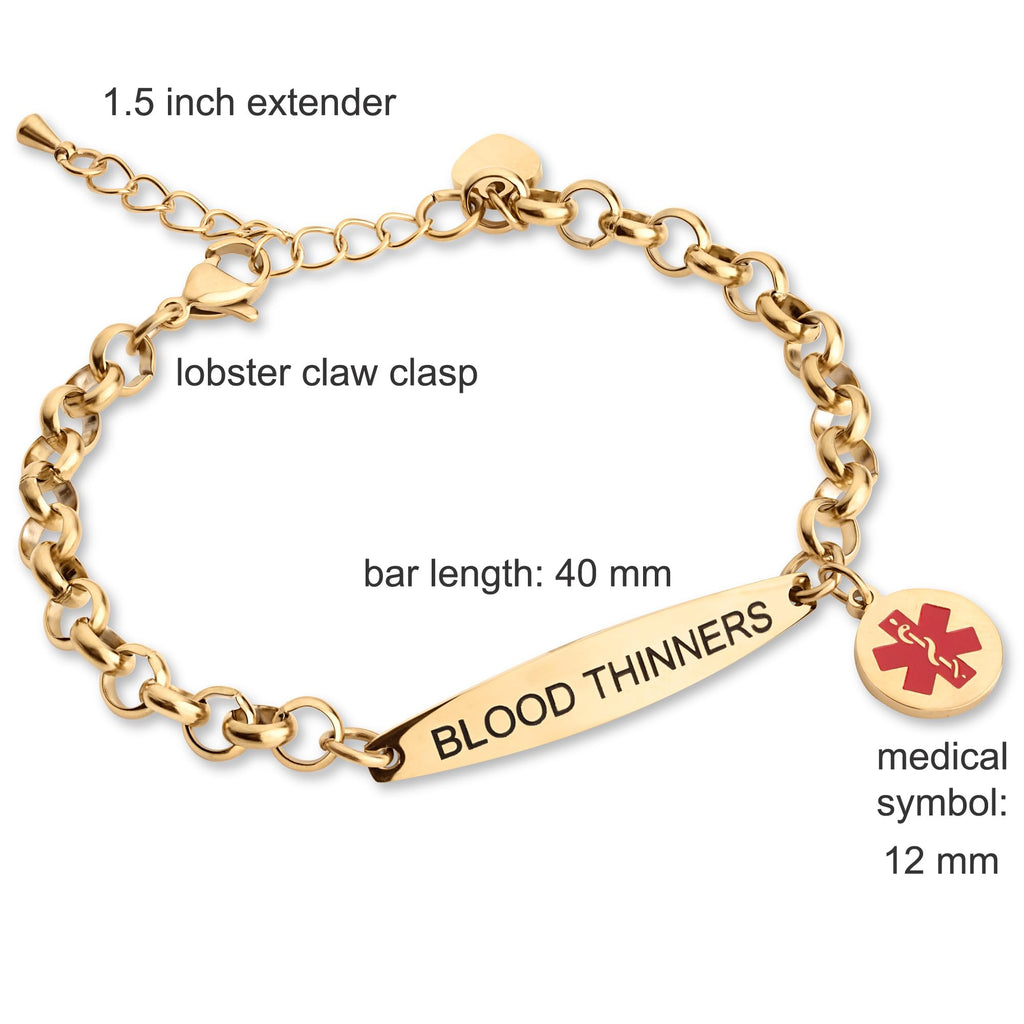 Medical Alert ID Bracelet for Women, Stylish Customizable Medic Jewelry,18k Gold, Rose Gold, Silver, Personalized Engraving, Hypoallergenic, Waterproof, Includes Gift Box & Med ID Wallet Card - CGB1041. Starts at
