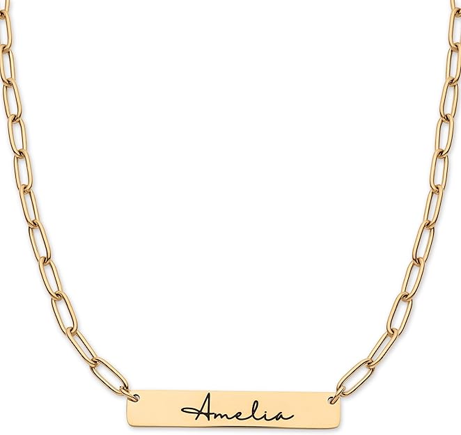 Personalized Name Plate Bar Necklace for Women, Customized Engraved Jewelry for Teen Girls Daughter Wife Mom Girlfriend, Customizable Names Date Message, Mother's Day Birthday Gift, 18k Gold Plated - CGN1061A. Starts at