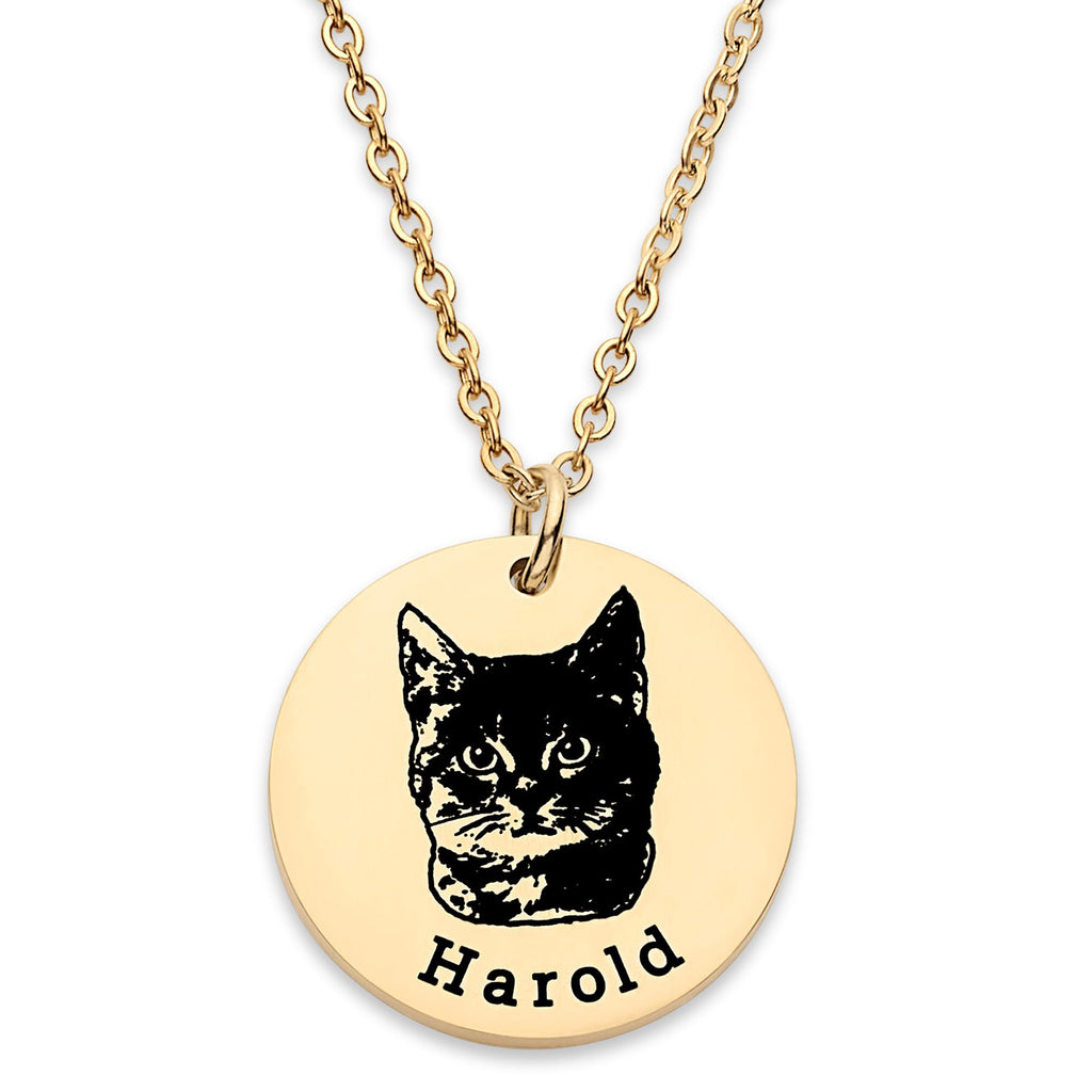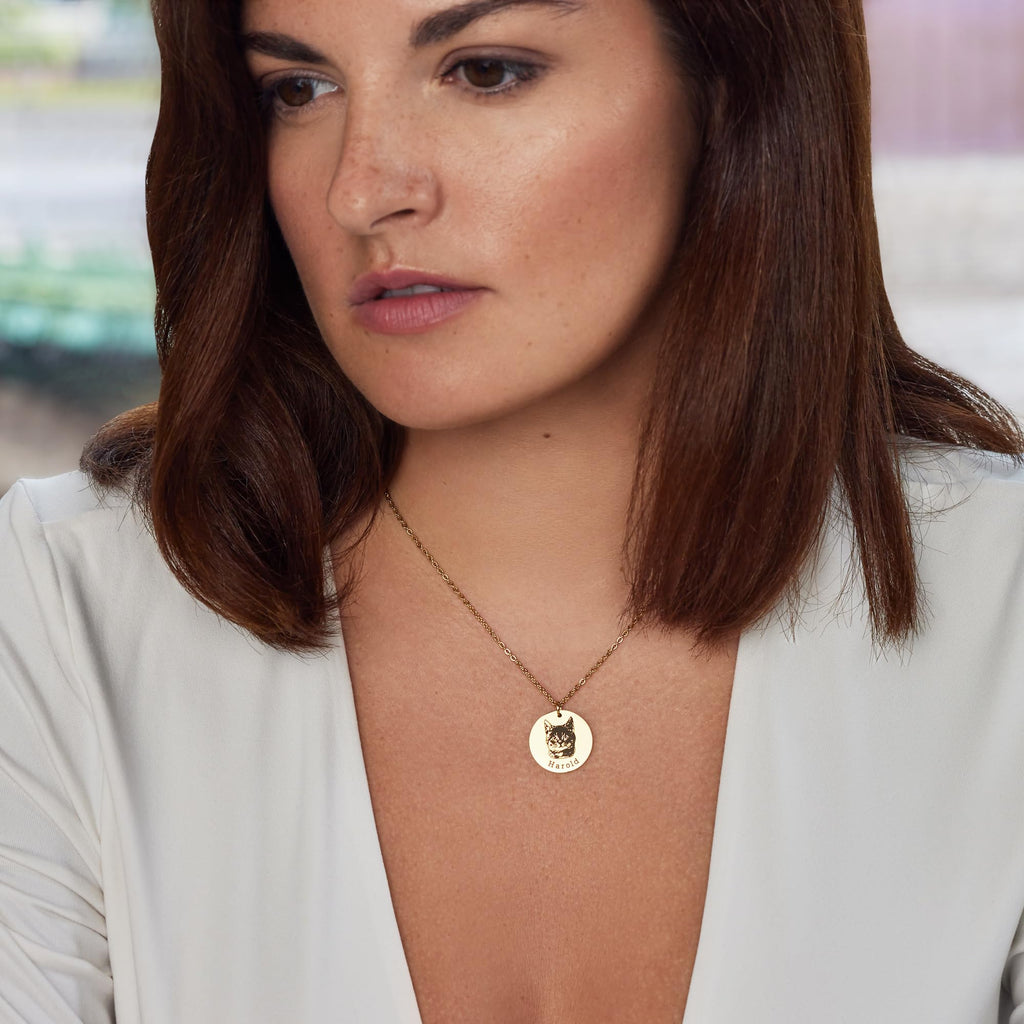 Customized Dog Portrait necklace, Personalized Cat Photo Picture Jewelry, Memorial Loss of a Dog Cat Gift for Mom Women Teen Girls Pet Lovers, Engraved Name, 18k gold plated, Custom Christmas Gifts - CGN1070. Starts at