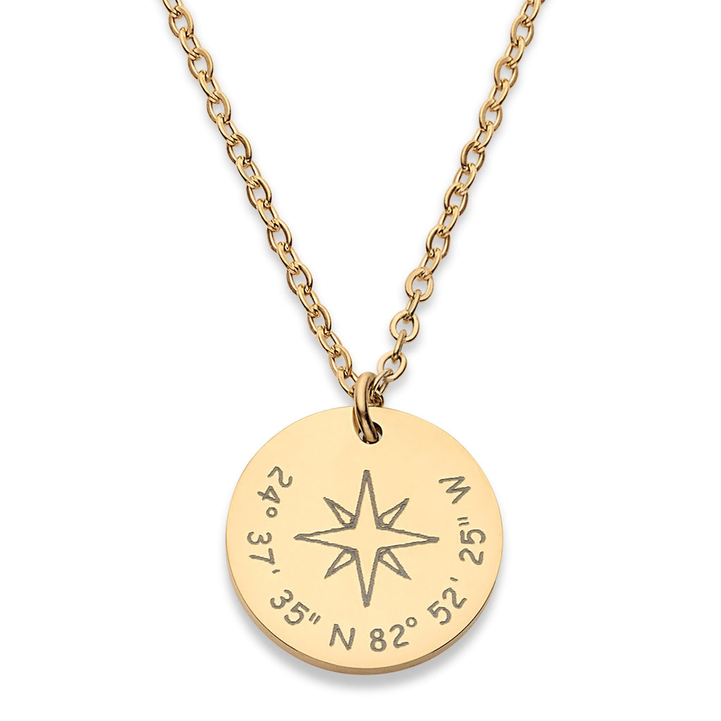 Coordinates Necklace, Latitude Longitude Compass, Personalized Graduation Gift for Her, Birthday Anniversary Christmas Gift for Women Wife, Customized Engraved 18k Gold Plated, Bridesmaids Jewelry - CGN1051. Starts at