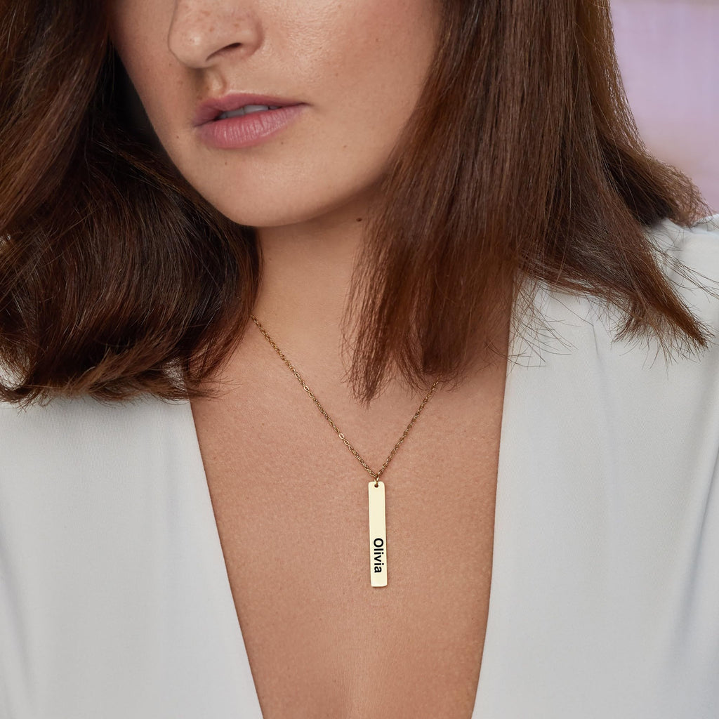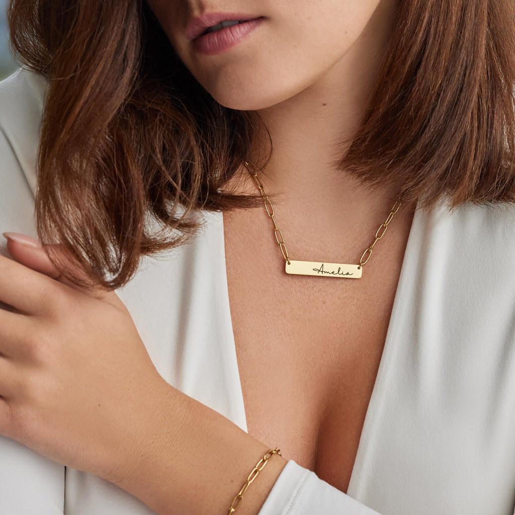 Personalized Bar Necklace - Gold Nameplate - CG220N. Starts at