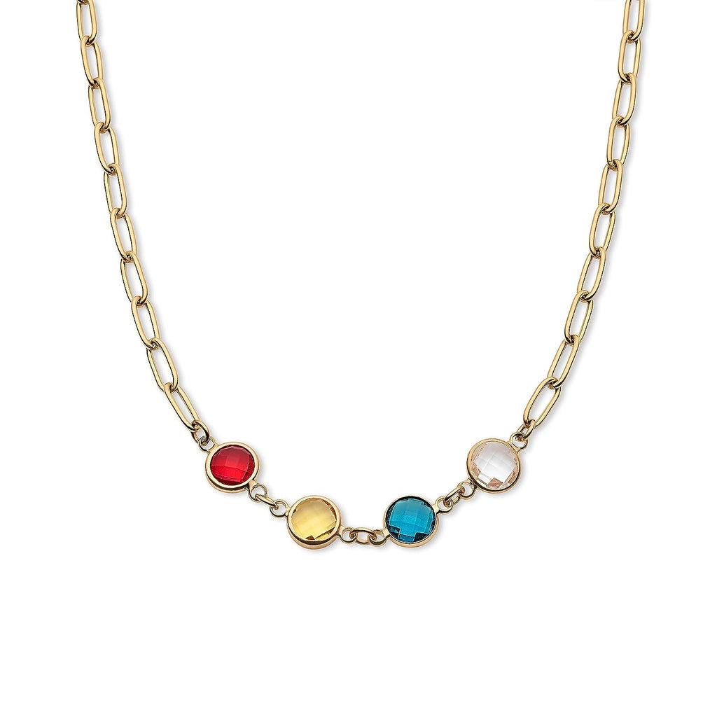Birthstone Paper Clip Necklace for Women, Mom, Up to 7 Birthstones, Custom Personalized Necklaces in 18K Gold Plated & Stainless Steel, Mother's Day Christmas Gift Daughter Wife Grandma Family Jewelry - CGN1073. Starts at