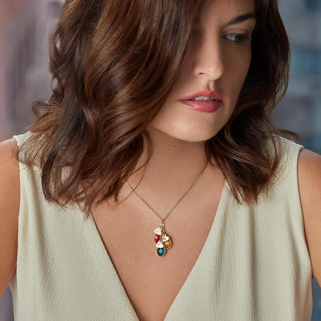 Birthstones & Initials Necklace for Mom, Grandma, Women Up To 7 Birthstones, Multiple Kids, Grandkids, Family Jewelry, Custom Heart Initial Charms 18k Gold Plated Birthday Graduation Mother's Day Gift - CGN1011. Starts at