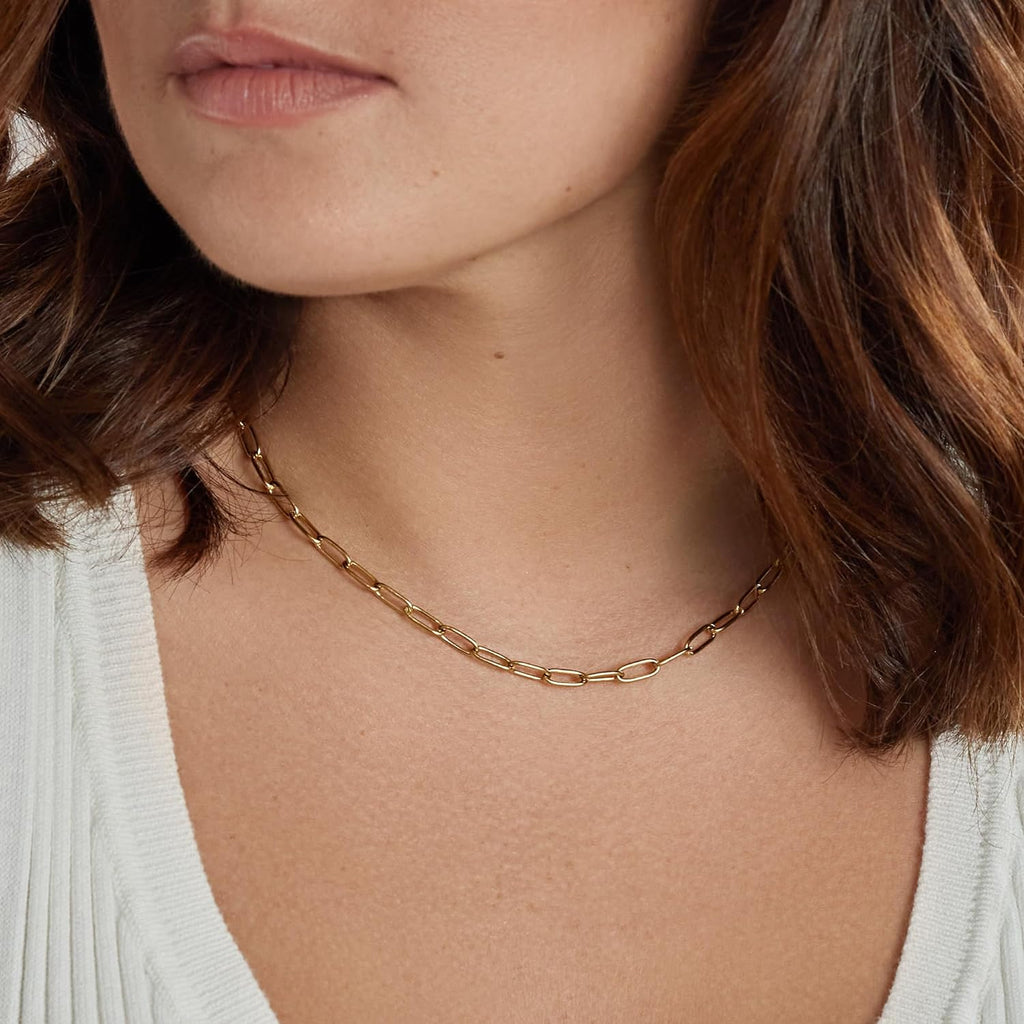 Gold Necklaces for Women, Paperclip Link Chain Adjustable Necklace with a Lobster Clasp 18k Real Gold Plated Yellow Rose Silver Stainless Steel, Handcrafted Jewelry, Birthday Graduation Christmas Gift - CGN1018. Starts at