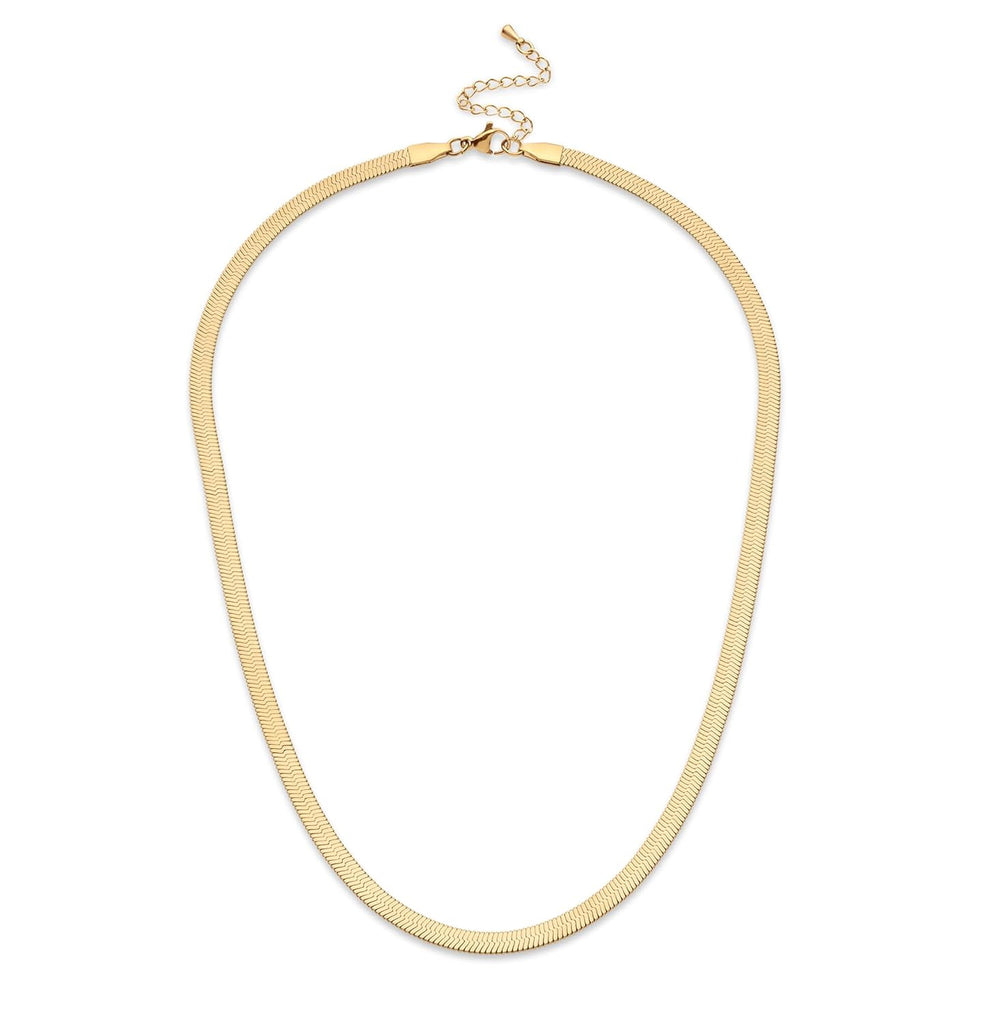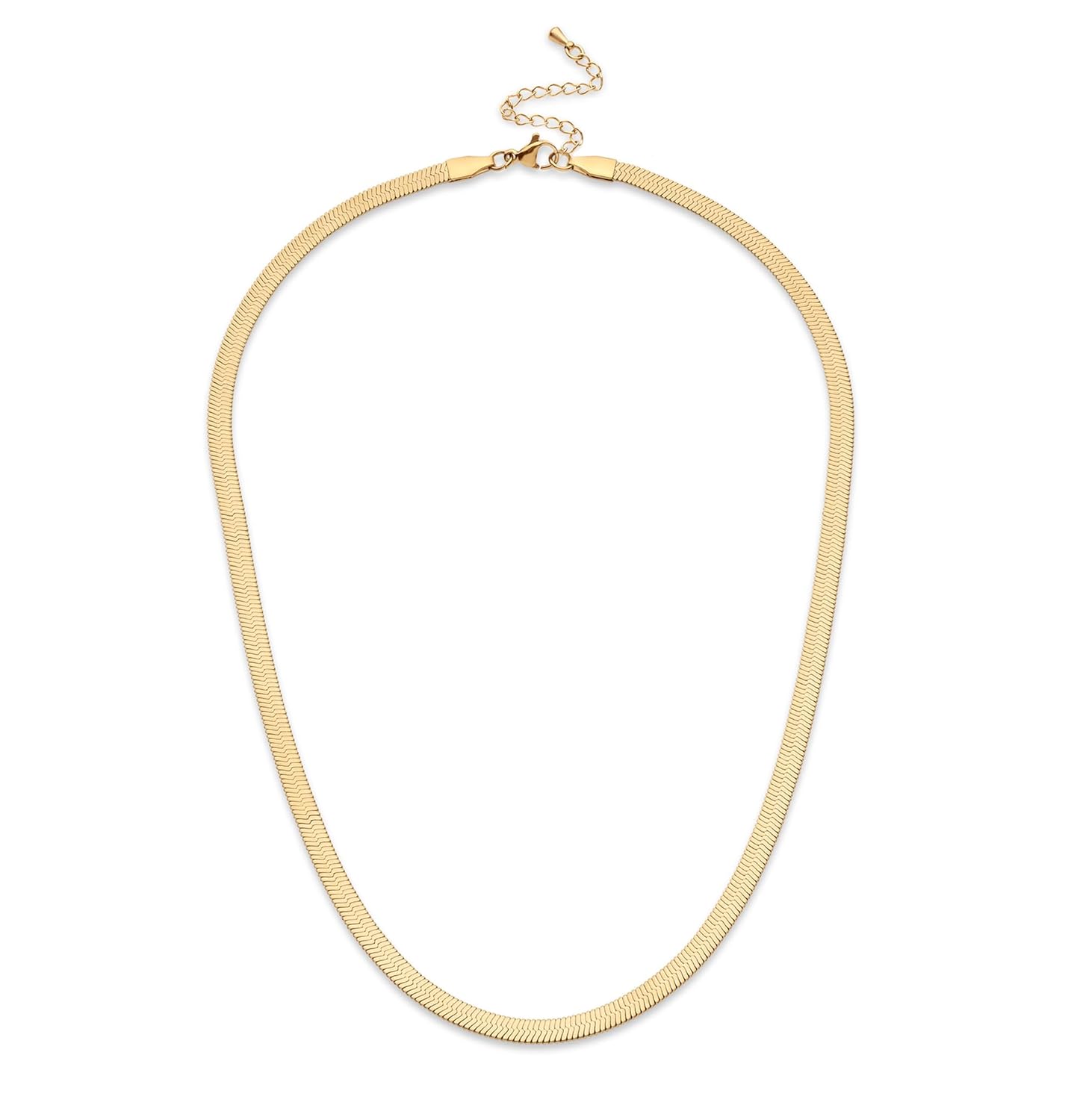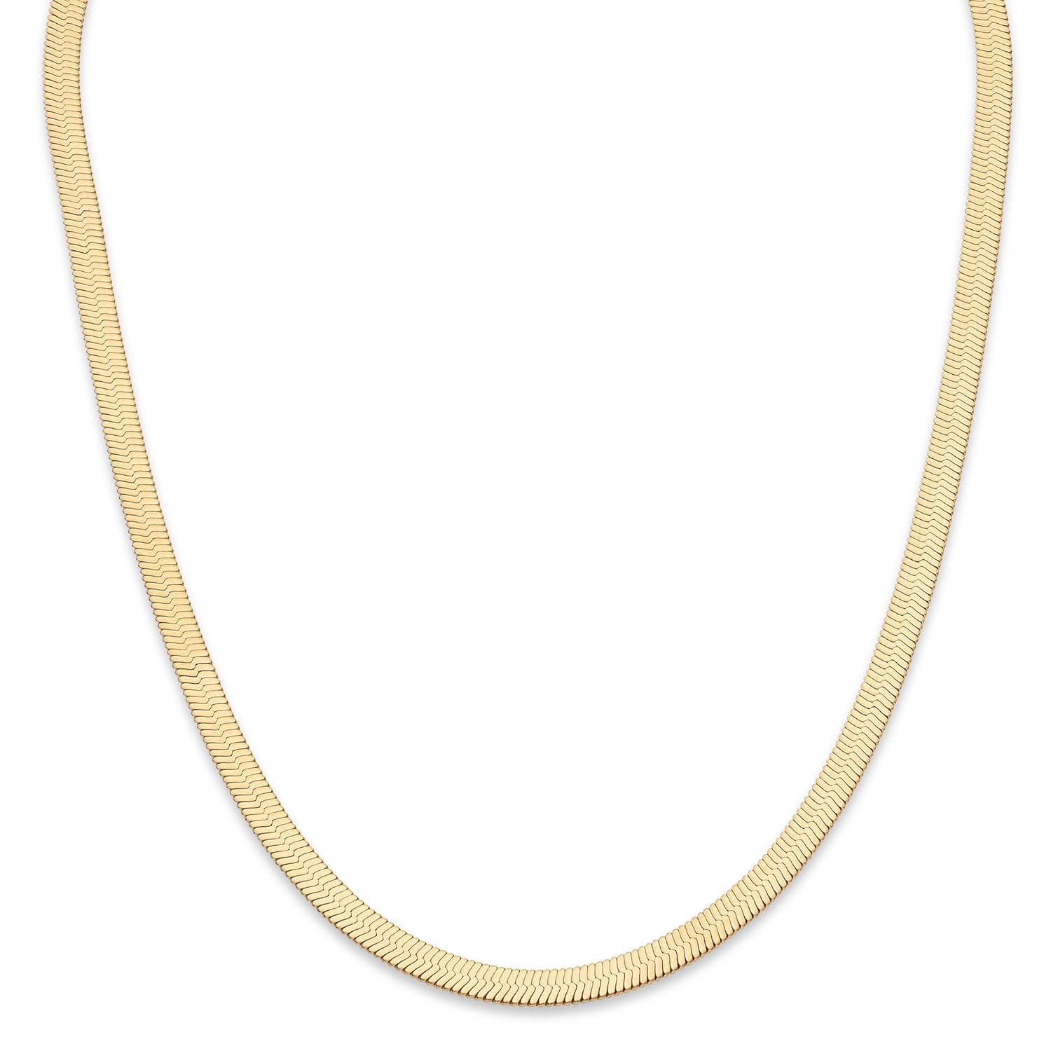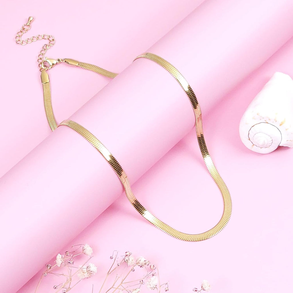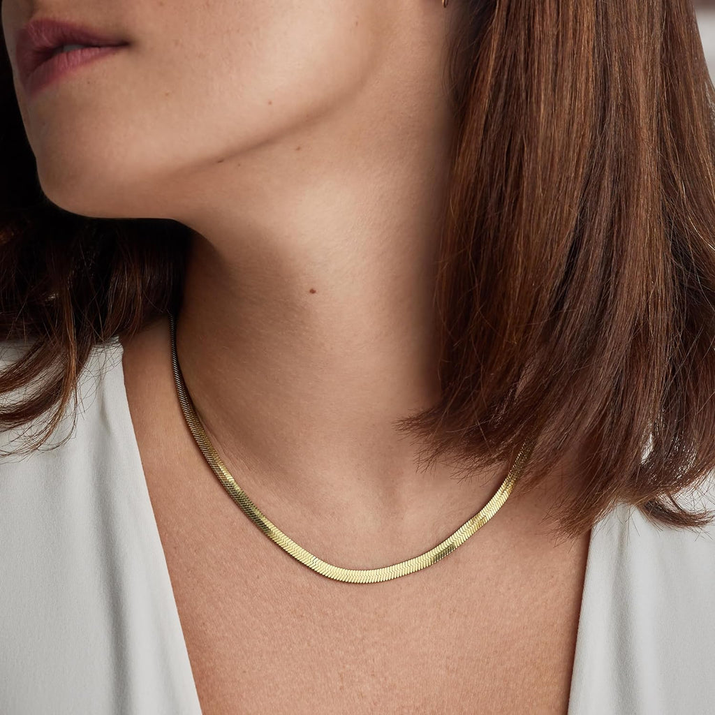Gold Herringbone Necklace, Snake Chain Choker, 18k Gold Plated Highly Polished Shiny 4 mm Necklaces for Women, Teen Girls, Birthday Christmas Wedding Graduation Gifts, Minimalist Trendy Jewelry - CGN1085.