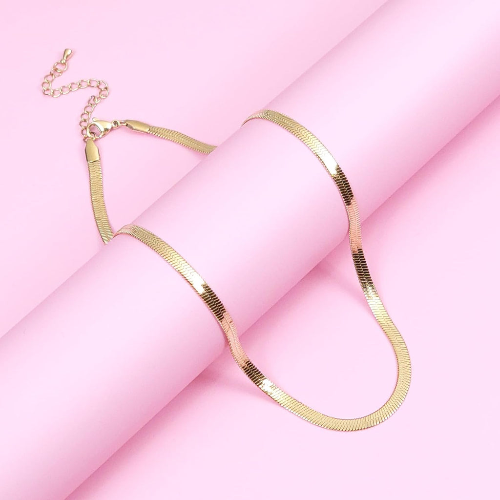 Gold Herringbone Necklace, Snake Chain Choker, 18k Gold Plated Highly Polished Shiny 4 mm Necklaces for Women, Teen Girls, Birthday Christmas Wedding Graduation Gifts, Minimalist Trendy Jewelry - CGN1085. Starts at