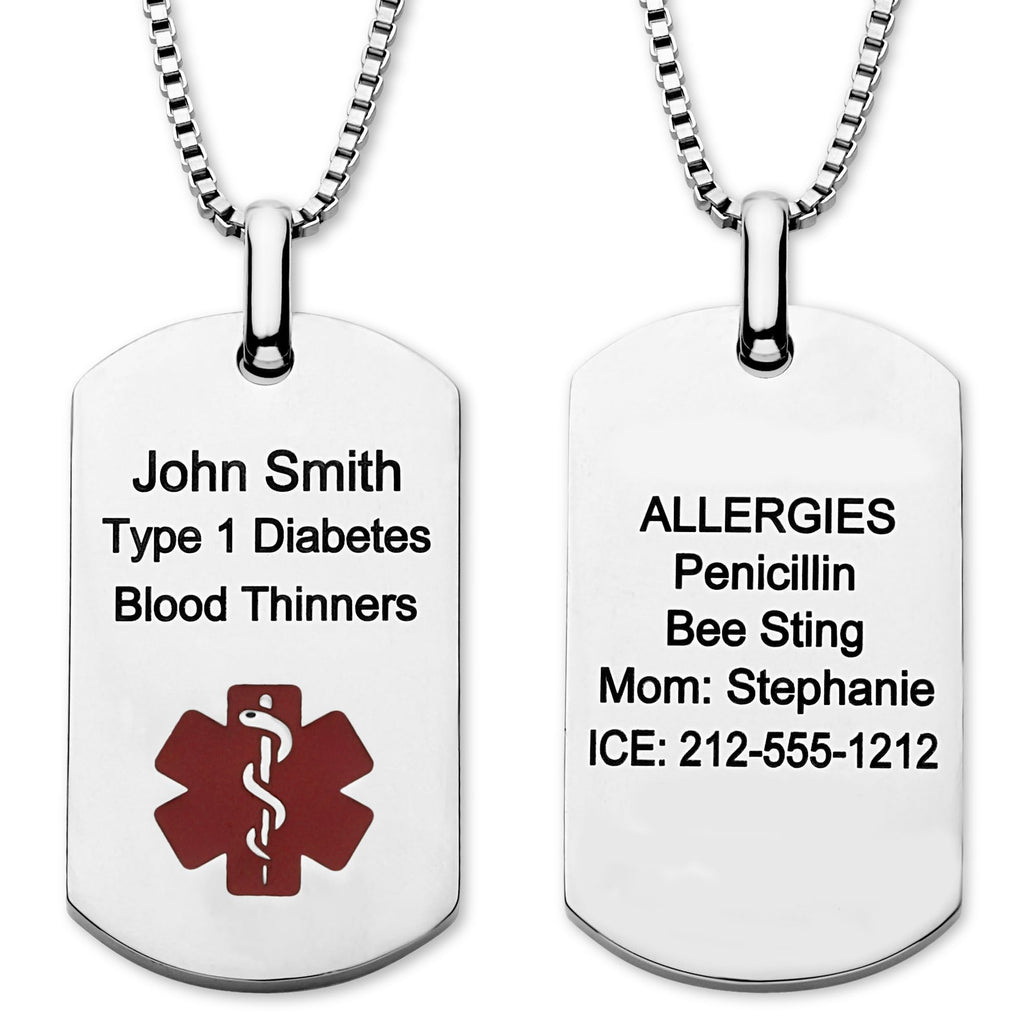Medical Alert ID Dog Tag Necklace for Men Women, Customizable Engraving, Medical Jewelry for Emergency, Silver Stainless Steel, Hypoallergenic, Waterproof, Includes Gift Box & Medical ID Wallet Card - CGN1042. Starts at