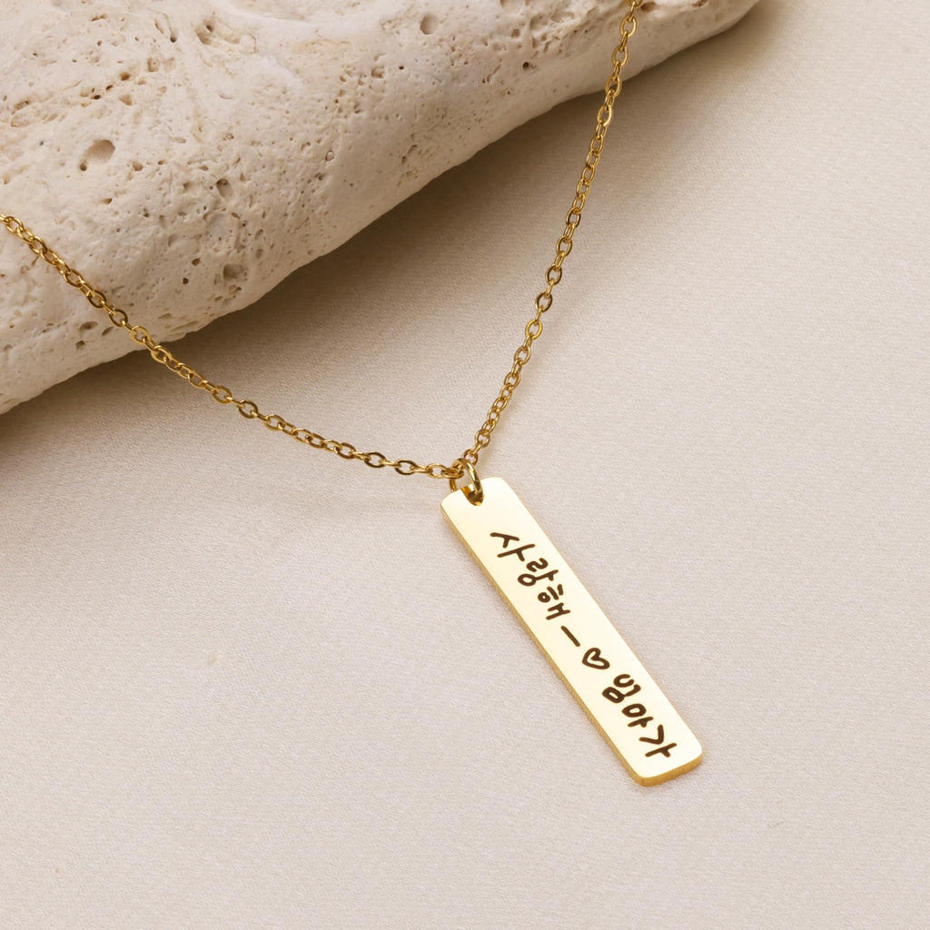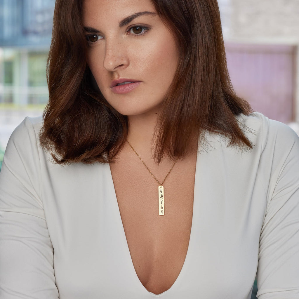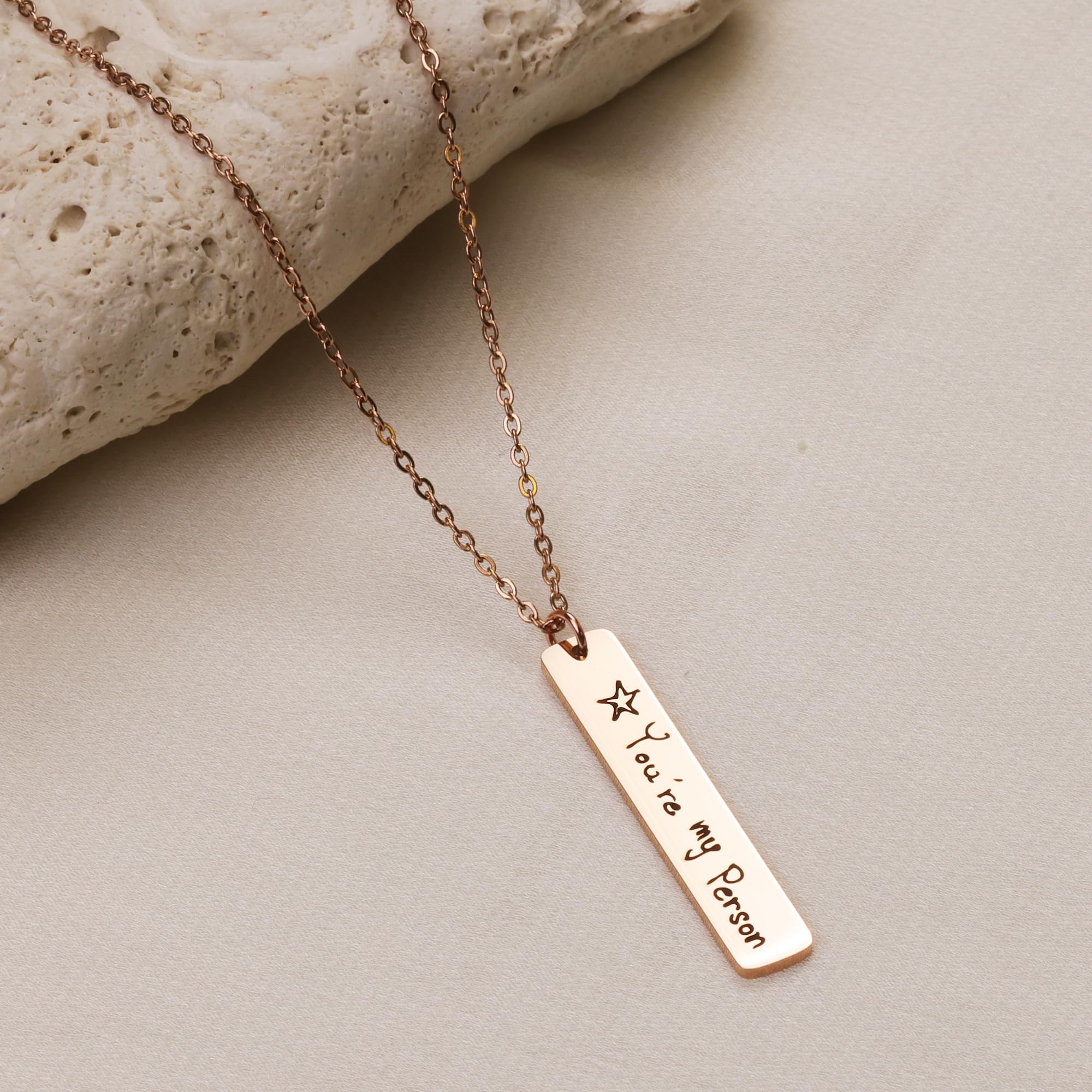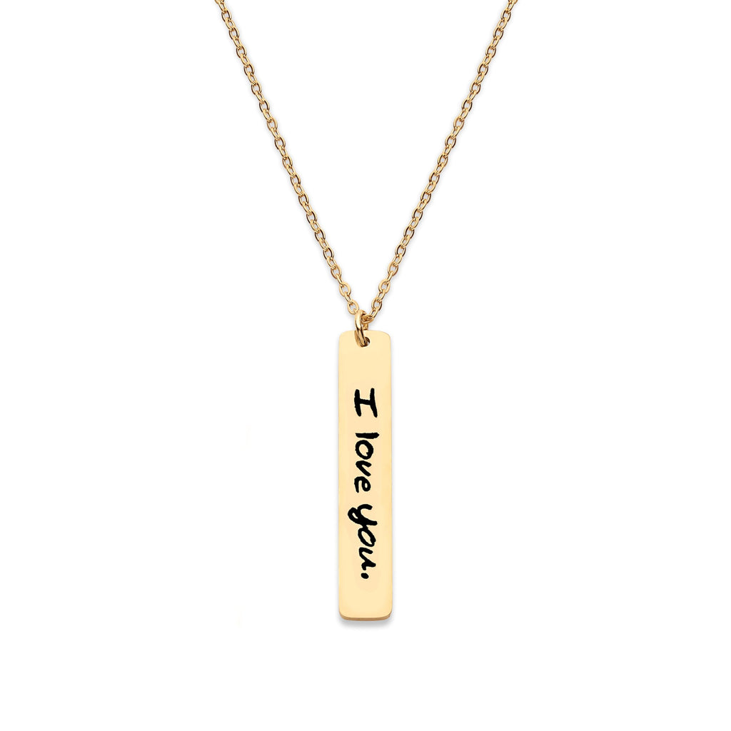 PERSONALIZED JUST FOR HER: Customize a stunning and exquisite rectangle bar pendant with Actual Handwriting. [Pendant Size]: Bar - 40 mm x 7 mm ( 1.6 inch x 0.28 inch ), [Necklace Length]: 16"+2", 18"+2" & 20"+2" extender. [Metal Type & Color]: 18k yellow gold plated, 18k rose gold plated, Silver Color High Quality Surgical Grade Stainless Steel