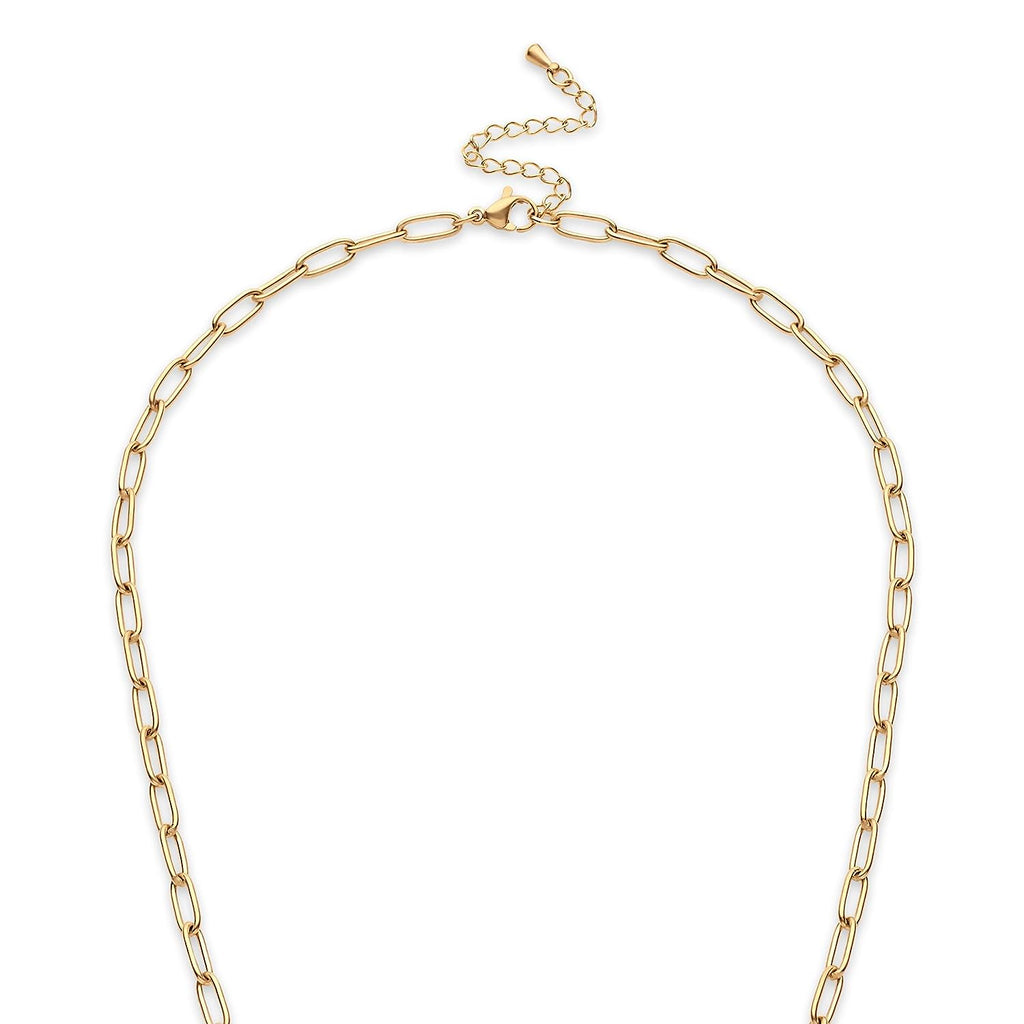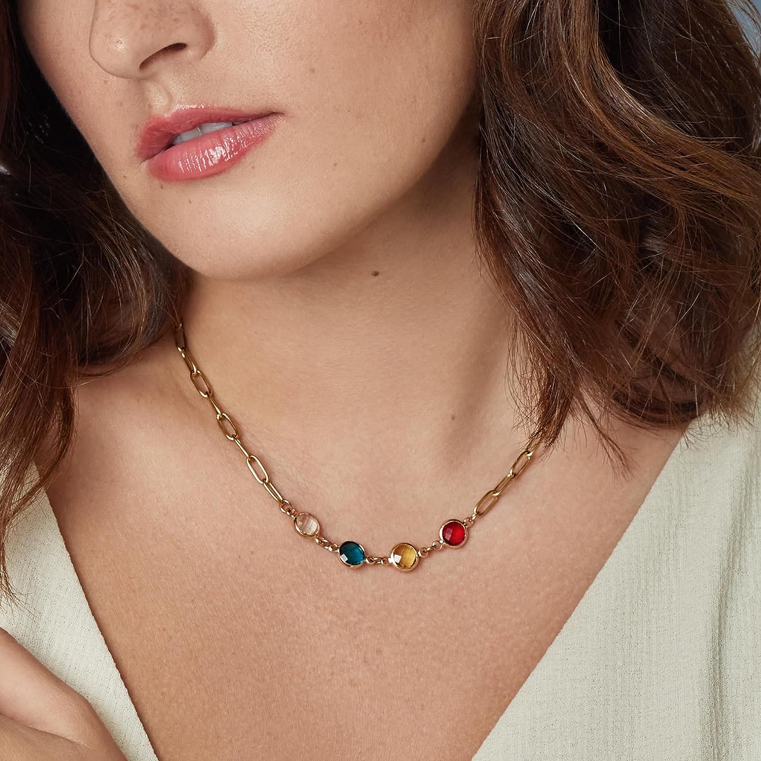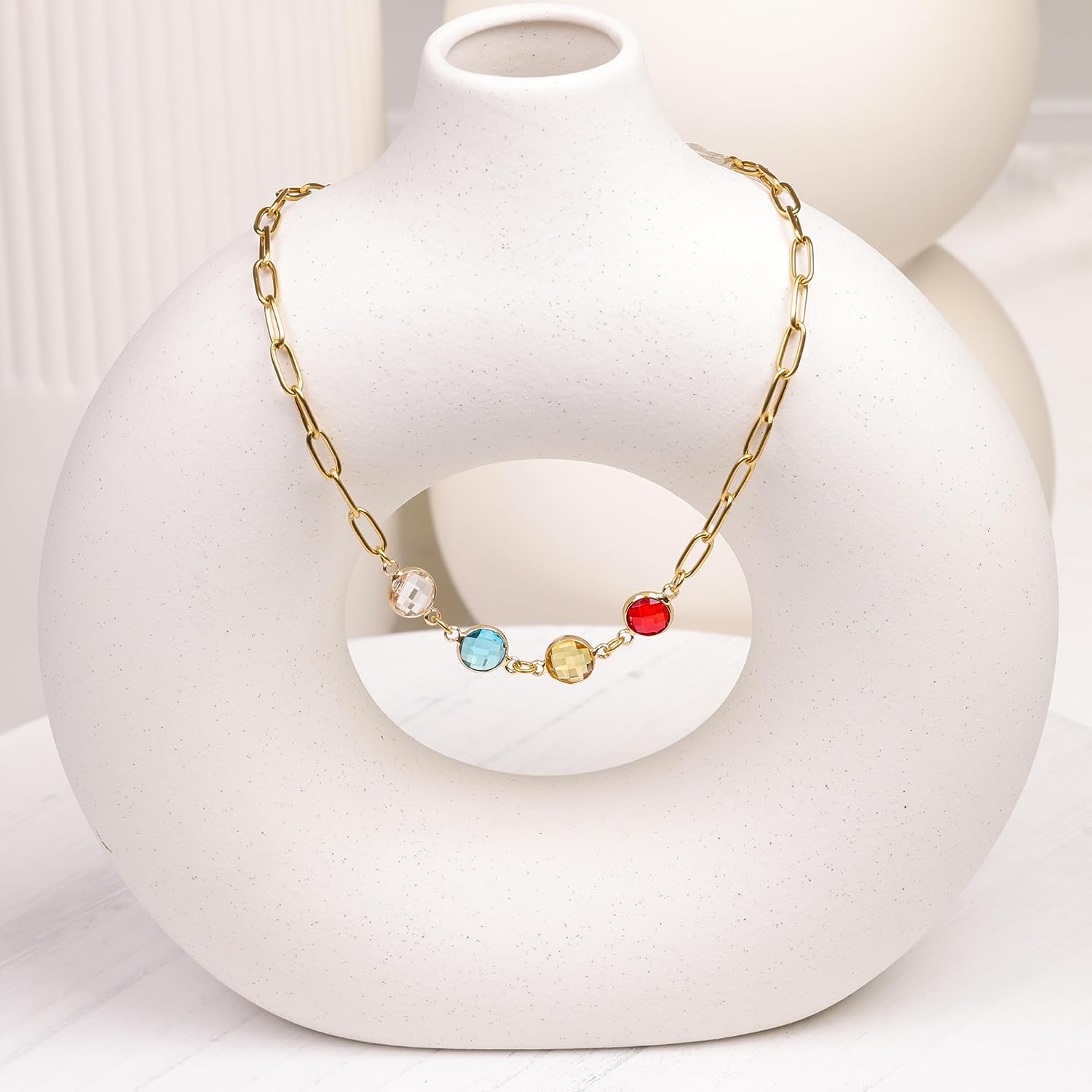 Birthstone Paper Clip Necklace for Women, Mom, Up to 7 Birthstones, Custom Personalized Necklaces in 18K Gold Plated & Stainless Steel, Mother's Day Christmas Gift Daughter Wife Grandma Family Jewelry - CGN1073.