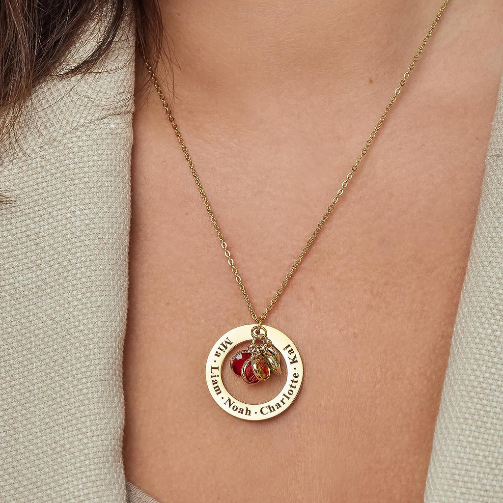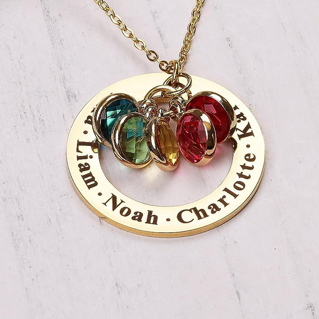 Personalized Name Necklace with 1-6 Birthstones for Mom, Grandma, Women, Custom Engraved Family Jewelry, 18k Gold Plated, Multiple Birthstones & Kids Names, Mother's Day, Christmas, Jewelry Gift - CGN1014