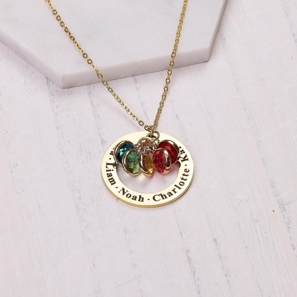 Personalized Name Necklace with 1-6 Birthstones for Mom, Grandma, Women, Custom Engraved Family Jewelry, 18k Gold Plated, Multiple Birthstones & Kids Names, Mother's Day, Christmas - CGN1014. Starts at