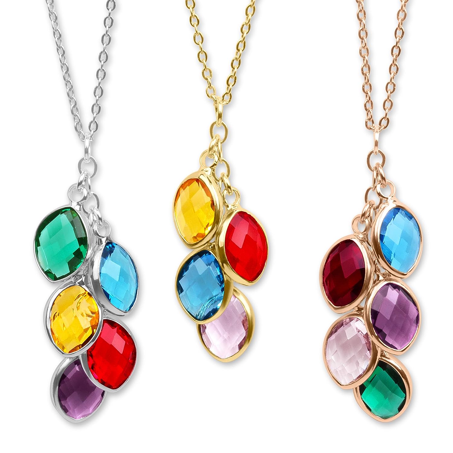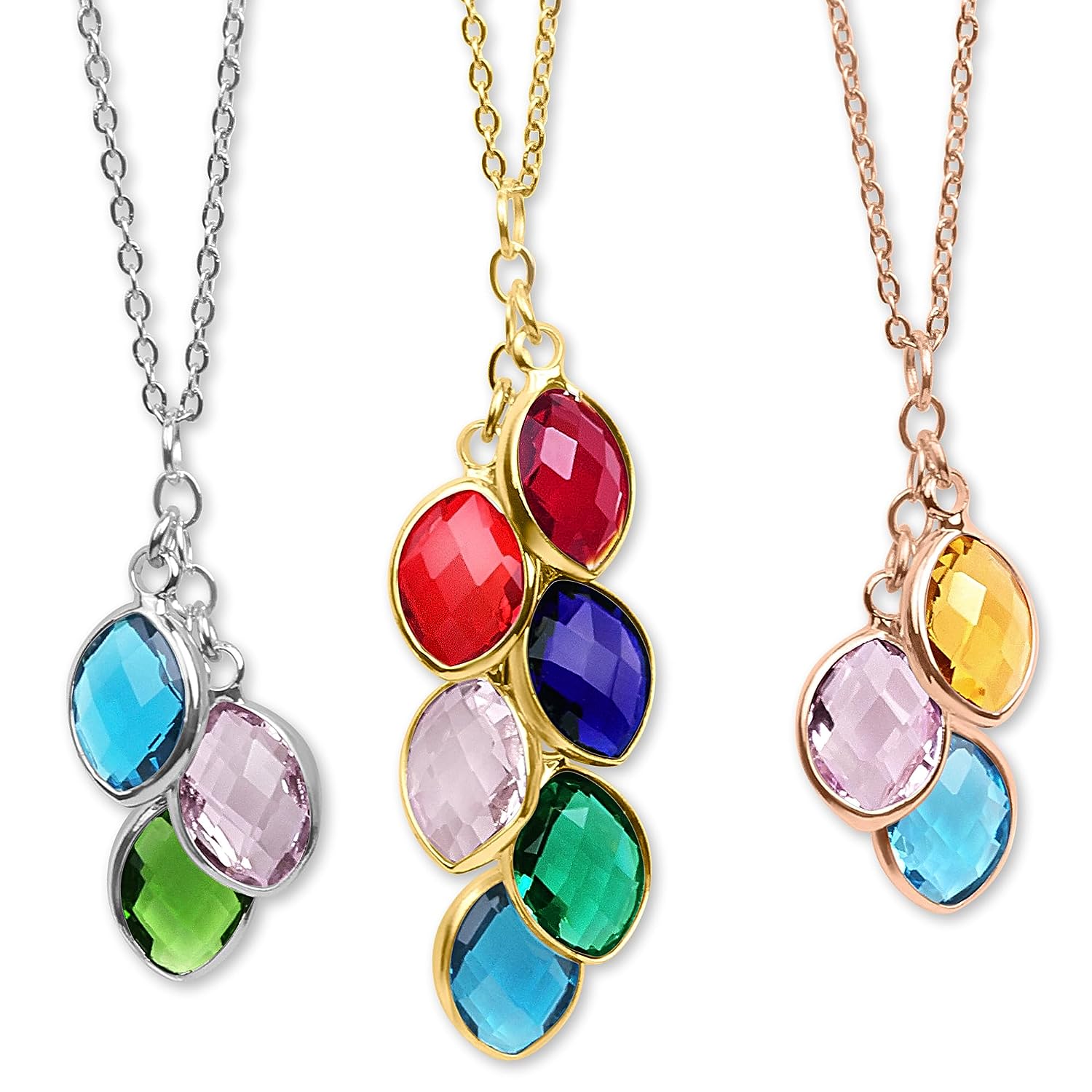 PERSONALIZED JUST FOR HER: Customize up to 7 stunning and exquisite birthstones. [Birthstone Size]: 0.35 x 0.63 inch, 9 x 16 mm. [Necklace Length]: 16"+2", 18"+2" & 20"+2" extender. [Metal Type & Color]: 18k yellow gold plated, 18k rose gold plated, Silver Color High Quality Surgical Grade Stainless Steel
