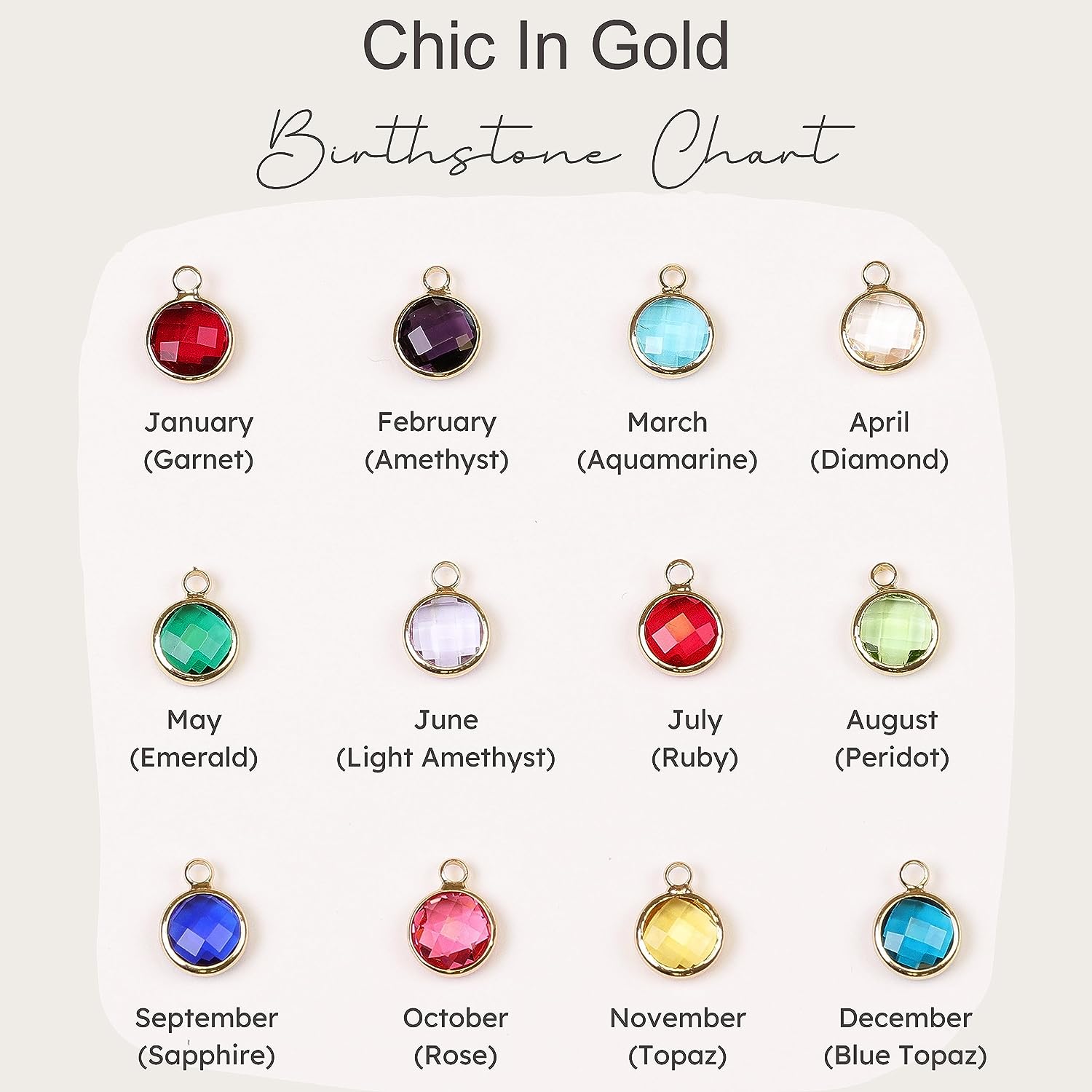 [BIRTHSTONE OPTIONS]: January - Garnet, February - Amethyst, March - Aquamarine, April - Diamond, May - Emerald, June - Light Amethyst, July - Ruby, August - Peridot, September - Sapphire, October - Pink Tourmaline, November - Topaz, December - Blue Topaz